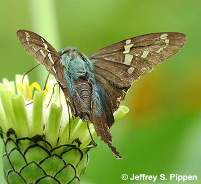 A Zurucco Duskying (left) perches in the Duke Forest. This Long-tailed Skipper (right) showed up in the Duke Gardens on Count Day for only the second time ever on the Durham Count. 17 Aug 2014 |