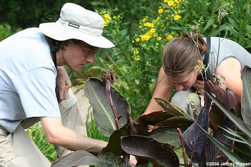 What in the world are these butterfliers doing? Counting Black Swallowtail caterpillars on fennel, of course. August, 2006 |