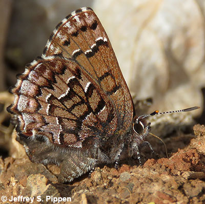 Eastern Pine Elfin (Callophrys niphon) Shocco Creek Gamelands, Franklin Co., NC 18 April 2004 |