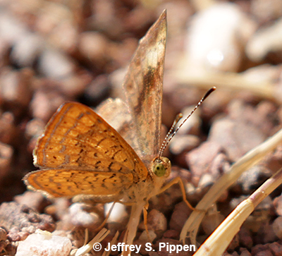 | #0447 Fatal Metalmark (Calephelis nemesis australis) NABA Park, Hidalgo Co., TX 13 Oct 2004 |