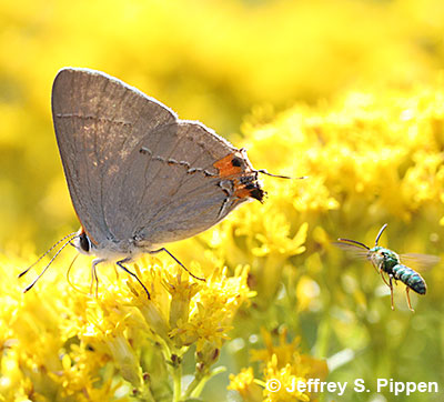 Gray Hairstreak (Strymon melinus humuli) Alligator River NWR, Dare Co., NC 18 Sep 2025 With a guard bee... |