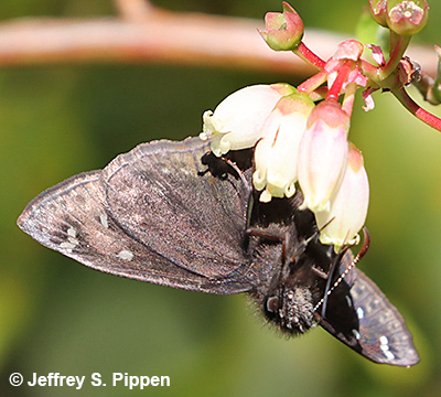 Juvenal's Duskywing (Erynnis juvenalis) Pine Island, Currituck Co., NC 21 Mar 2024 Nectaring on Vaccinium sp. |