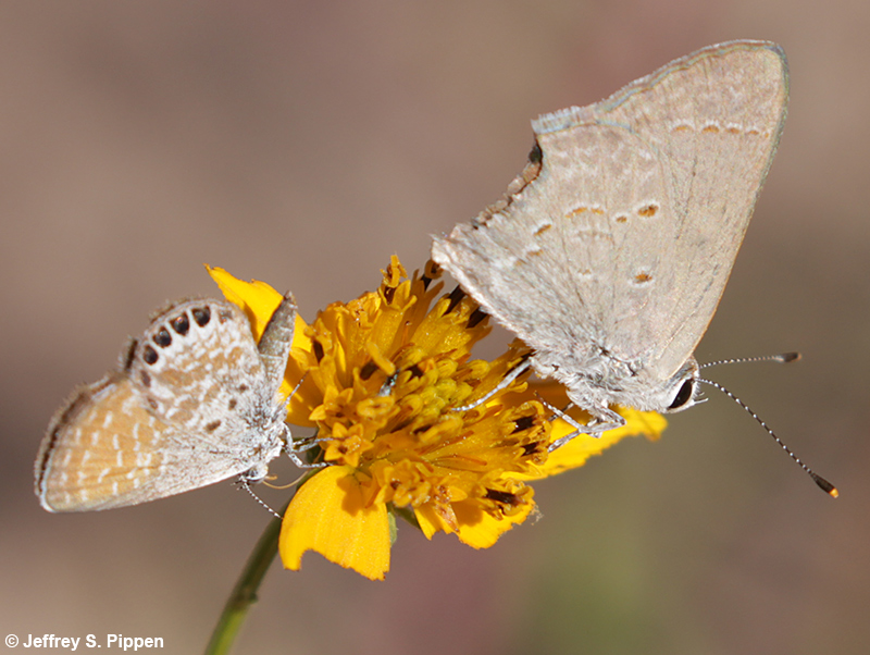 Leda Ministreak (Ministrymon leda) Santa Cruz Co., AZ 5 Nov 2024 With a Western Pygmy-Blue on the left |