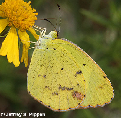 Little Yellow (Pyrisitia lisa) Mission, Hidalgo Co., TX 19 Oct 04 Note two black dots near the base of the hindwing |