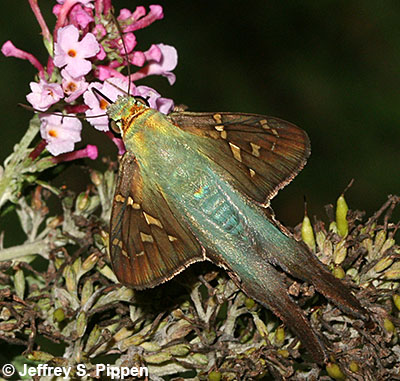 Long-tailed Skipper (Urbanus proteus) Brunswick Co., NC 4 Oct 2008 Nectaring on Liatris |