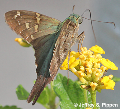 Long-tailed Skipper (Urbanus proteus) Carteret Co., NC 27 Oct 2017 Nectaring on Lantana |