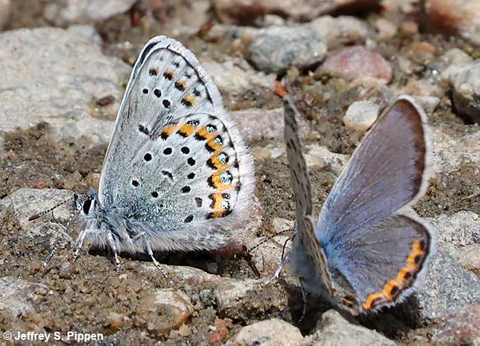 From left to right: Ancilla Blue (Euphilotes ancilla), Lupine Blue (Plebejus lupini), Northern Blue (Plebejus idas atrapraetextus) Wasatch Mountain State Park, Wasatch Co., UT 14 July 2014 |
