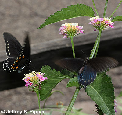 Pipevine Swallowtail (Battus philenor) Buncombe Co., NC 8 July 2006 Mated Pair, photographed with natural light (same picture with flash is at the bottom of the page) |