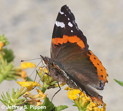 Red Admiral (Vanessa atalanta) Pettigrew State Park, Washington Co., NC 21 June 2006 Nectaring on tall Verbena |