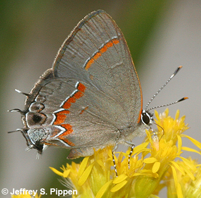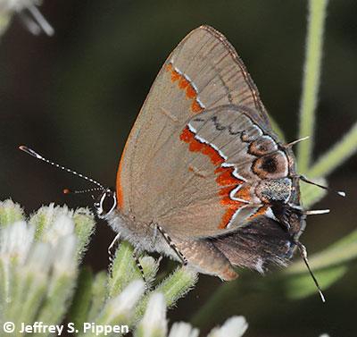 | Red-banded Hairstreak (Calycopis cecrops) Brunswick Co., NC 4 Oct 2008 |