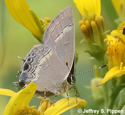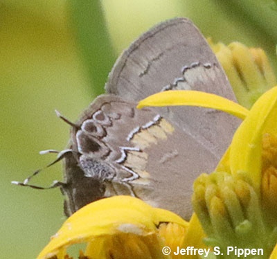 Red-banded Hairstreak (Calycopis cecrops) Duke Forest, Orange Co., NC 19 Sep 2023 Aberrant individual lacking red pigment |