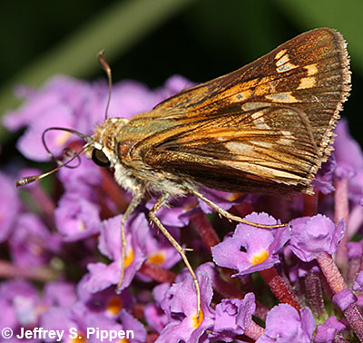 Genomics studies published in Zhang et al. (2022) determined that the subspecies of Sachem in the eastern US should be elevated to species level (Atalopedes huron) and that the subspecies in the northwestern US is the true Atalopedes campestris. It will take some time for new field guides and others to accept and adopt this change. Assuming widespread acceptance, the English name for "our" Sachem here in the eastern US may become "Eastern Sachem" or "Huron Sachem."![]() |