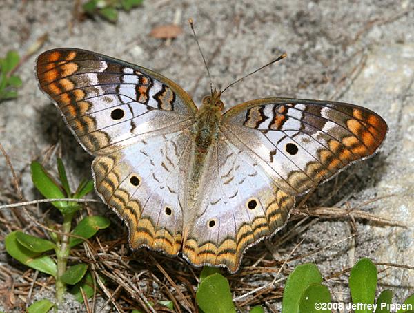 White Peacock (Anartia jatrophae) Collier Co., FL 31 Dec 2008 Where common, White Peacocks are found in disturbed open areas with flowers like fields, roadsides, etc. |