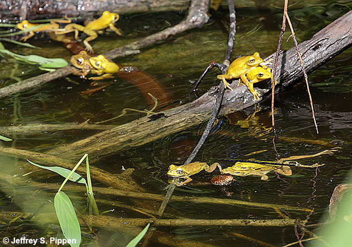 Cuban Tree Frog (Osteopilus septentrionalis) Fakatchee Boardwalk, Collier Co., FL 15 May 2018 Apparently this water snake has already had enough to eat...or else Cuban Tree Frogs aren't very tasty due to the toxic slime they produce... |