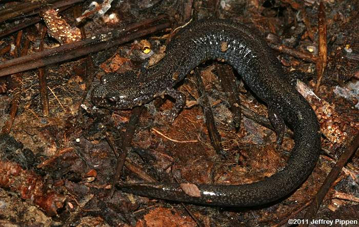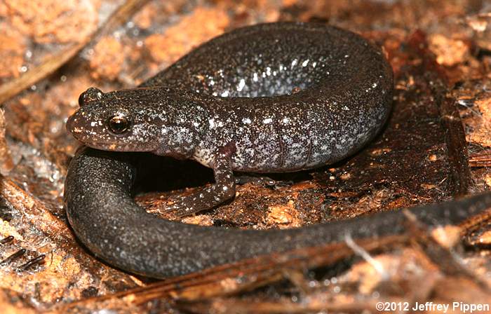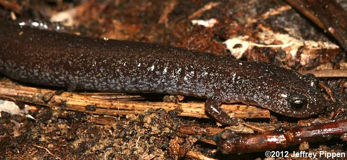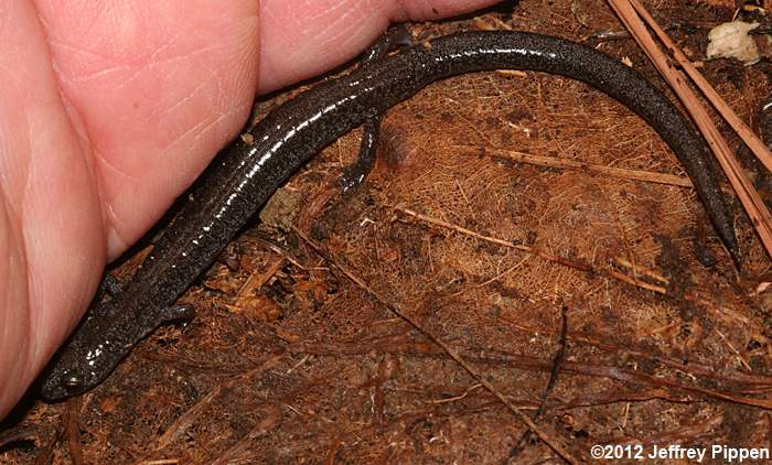 Red-backed Salamander (Plethodon cinereus) Under cover board in mixed pine/hardwoods in Duke Forest Durham Co., NC 11 Mar 2012 Some Red-backed Salamanders lack the reddish stripe and are referred to as "lead-backed" salamanders. |