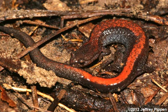 Red-backed Salamander (Plethodon cinereus) Under leaf litter in mixed pine/hardwoods in Duke Forest Durham Co., NC 9 Feb 2008 |