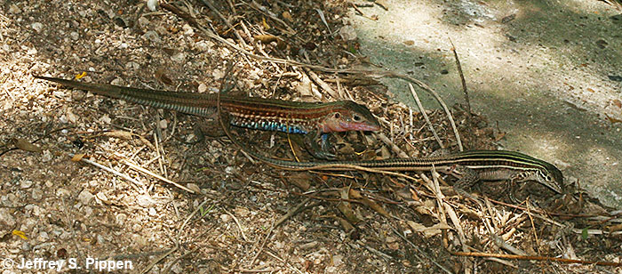 Texas Spotted Whiptail (Cnemidophorus gularis) Santa Ana NWR, Hidalgo Co., TX 3 May 2018 Male courting a female |