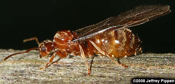 Prenolepis imparis; thanks to James Trager for ID Orange Co., NC 14 Mar 2008 Some researchers have suggested this could be a Formica pallidefulva species group queen ant. |