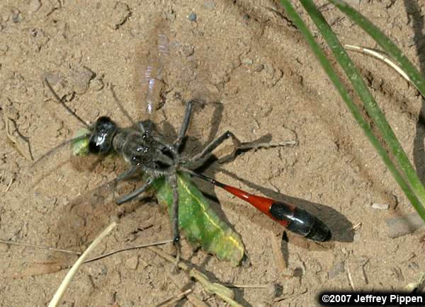 Ammophila sp. Mono Co., just east of Tioga Pass, CA 16 July 2007 This sphecid found a juicy caterpillar for lunch |