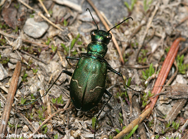 #5255 Boreal Long-lipped Tiger Beetle (Cicindela longilabris) Reserva Faunique Mastigouche, Quebec, Canada 5 Aug 2005 |