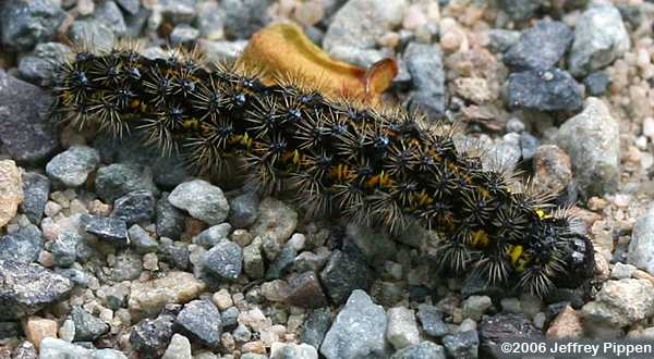 CAUTION: STINGING HAIRS!! Buck Moth caterpillar found on Willow Oak (Quercus phellos)Harnett Co., NC 29 May 2005 |