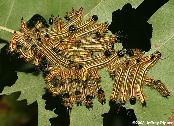 Spotted Datana (Datana perspicua) Durham Co., NC 6 Sep 2008 On Southern Red Oak (Quercus falcata). |