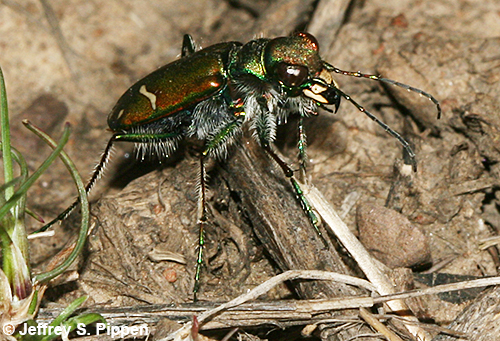 Purple Tiger Beetle, Cow Path Tiger Beetle (Cicindela purpurea audubonii) Lamar Valley, Yellowstone NP, Park Co., WY 5 May 2015 |
