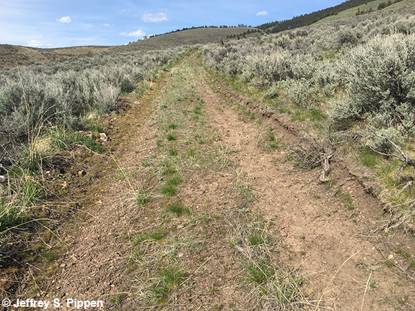 Two-track through sagebrush steppe habitat where several of the individuals above were photographed Sheep Camp, MPG Ranch, Missoula Co., MT21 Apr 2016 |