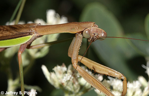 Chinese Mantid (Tenodera aridifolia) Orange Co., NC 8 Sep 2005 The introduced Chinese Mantid is the largest and most commonly encountered mantid in North Carolina. They can be green or tan, like this one. |