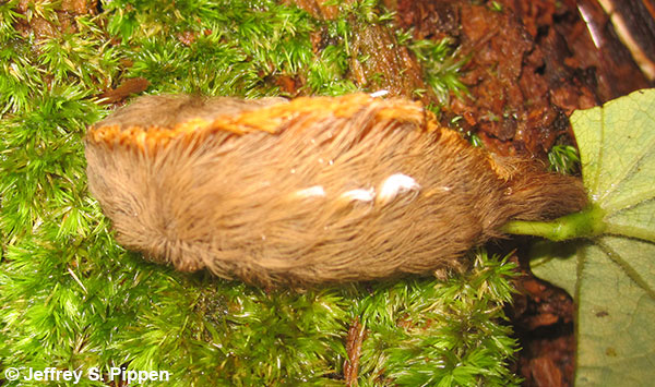 CAUTION: STINGING HAIRS!! Crinkled Flannel Moth, Black-waved Flannel Moth (Lagoa crispata = Megalopyge crispata)Craven Co., NC 27 Aug 2006 Early instars are pure white, while later instars become more orange-gray (see below) |