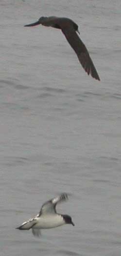 We saw several Peruvian Diving-Petrels, both on the water and flying by. They're sort of like a cross between a Razorbill and a Dovekie in flight. |