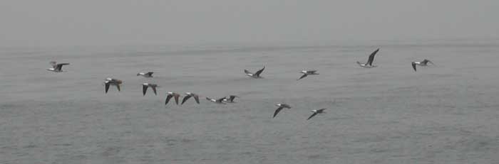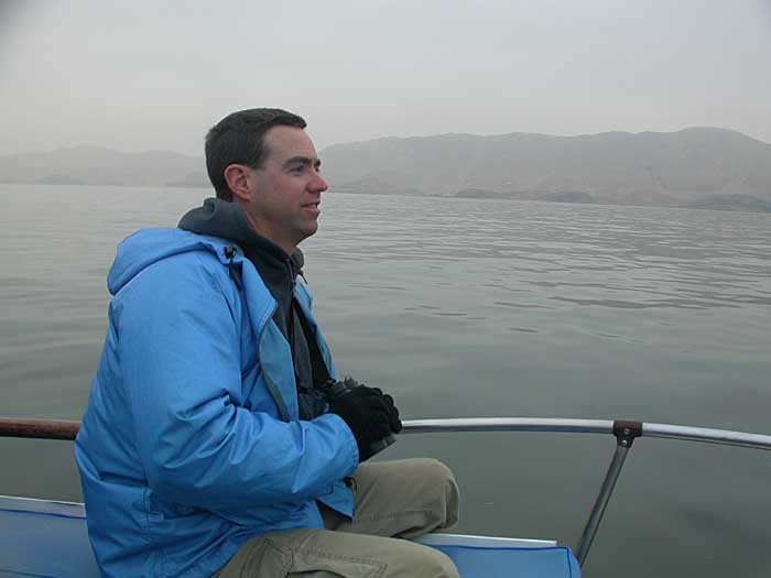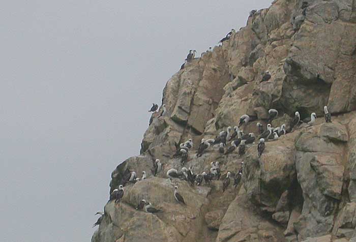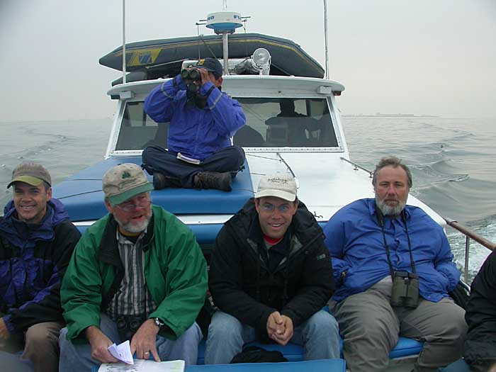 Arranged by Kolibri Expeditions, we took a pelagic boat trip from a harbor in Callao, just North of Lima. We went twenty miles or so out into the Pacific Ocean where the cold water of the Humboldt Current runs. This page contains my attempts at taking bird pics with only a 4X optical zoom (Nikon CoolPix 4500) digital camera. Most are fuzzy, so beware but enjoy.