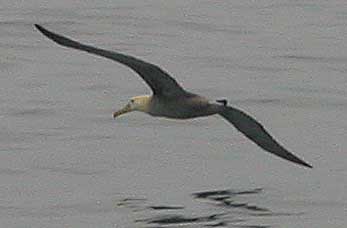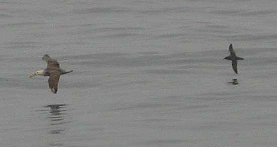 I sat at the port bow of the boat, which was a sturdy fishing boat maybe 35 feet long (?) with an open bow. The day was VERY calm, which was good for people, but the lack of wind meant a lack of albatrosses. However, it was almost always birdy. |