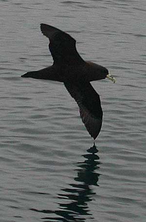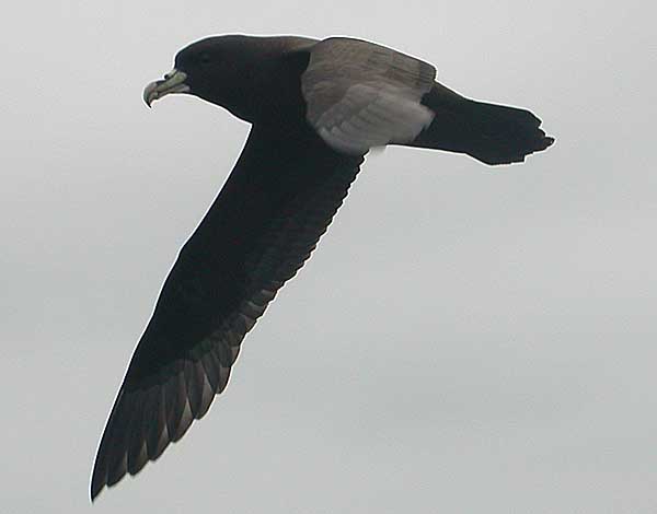 Note the tiny white chin patch and the the light bill tip. These two field marks separate this species from Westland Petrel. |