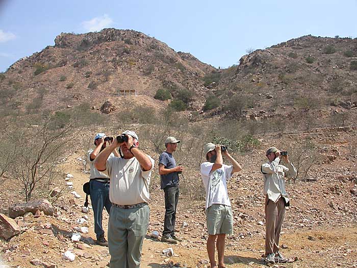 Looking for swifts and swallows in the foothills above the sanctuary. (Left to right: Harry, Derb, Blan, David, Dan) |