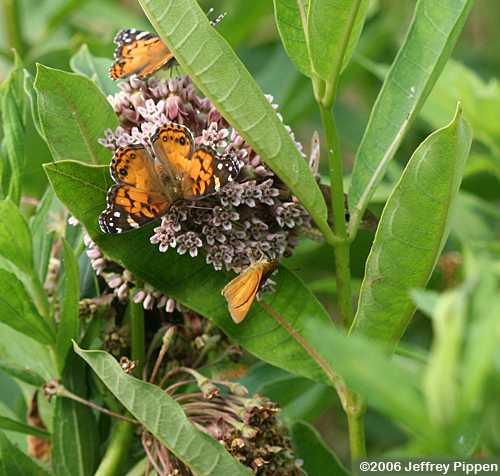 Common Milkweed (Asclepias syriaca) Washington Co., NC 21 June 2006 Two American Ladies and a Dion Skipper enjoy a rare disjunct patch of Common Milkweed growing in the North Carolina coastal plain. |