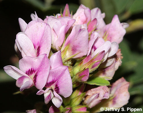 Chinese Lespedeza, Sericea Lespedeza (Lespedeza cuneata) Chatham Co., NC 2 Oct 2011 Common statewide along roadsides, powerline cuts, floodplains, and other disturbed areas, Chinese Lespedeza is introduced from eastern Asia. |