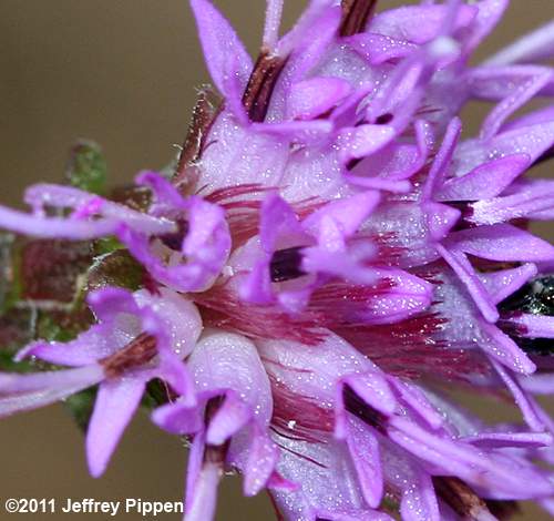 Southern Blazing Star, Appalachian Blazing Star, Earl's Blazing Star (Liatris squarrulosa) Durham Co., NC 13 Oct 2011 Phyllaries are reflexed and obtusely tipped. |