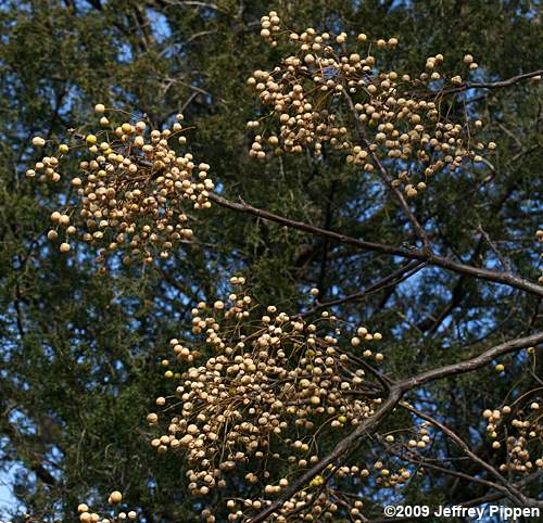 Chinaberry (Melia azedarach) Disturbed woods edge in Chapel Hill, Orange Co., NC 27 Dec 2009 Easily recognized in winter by its loose clusters of pale fruits. |