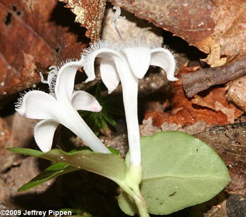 Partridgeberry (Mitchella repens) Mixed woods in Wake Co., NC 23 May 2009 Flower petals are quite hairy. |