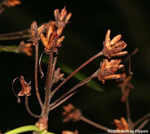 Great Laurel, Rosebay Rhododendron, Great Rhododendron (Rhododendron maximum) Buncombe Co., NC 21 Aug 2006 Fruit is a dehiscent capsule. |
