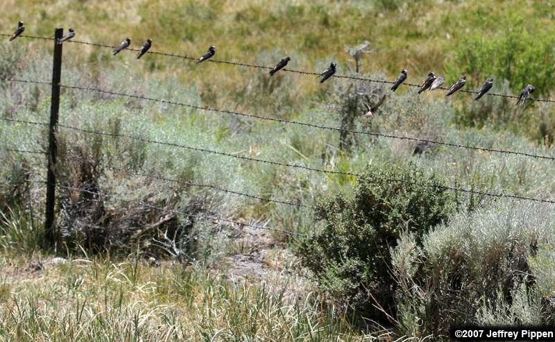 Cliff Swallows in a line-up near Walker River Meadows 12 July 2007 |