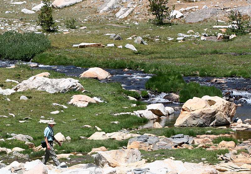 Bill pokes around the river between Greenstone & Saddlebag Lakes. Mono Co., CA 17 July 2007 |