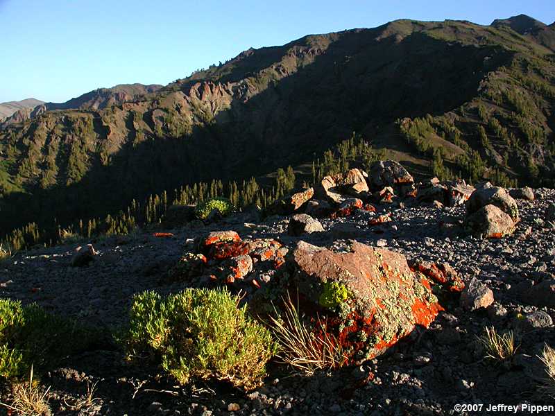 Lichen-covered rocks at sunset at Sonora Pass 11 July 2007 |