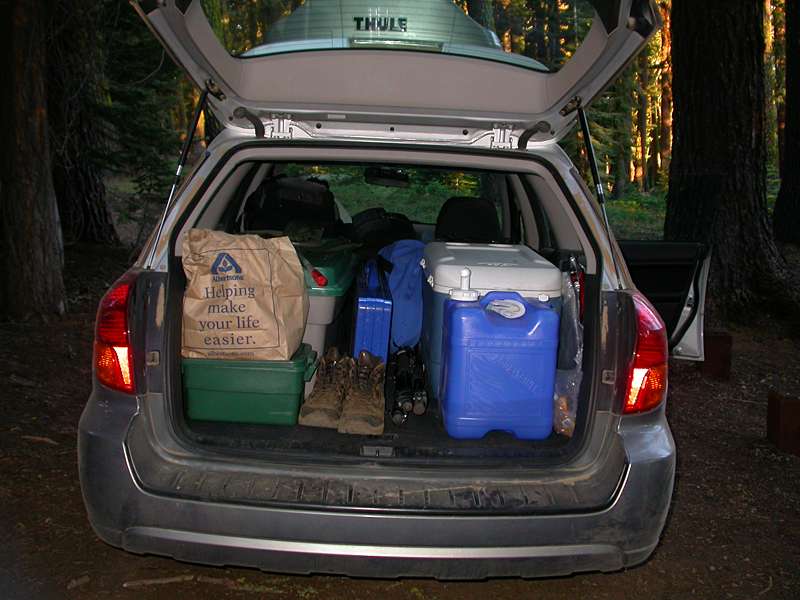 The next day, we packed up to begin the journey to the mountains, ready for camping and photographing. Everything has a place in the back of Bill's Subaru (or in the car-top carrier on top! |