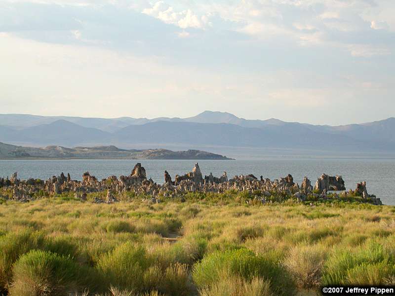 Note the smoke in the background sky from nearby forest fires. Mono Lake, CA 16 July 2007 |