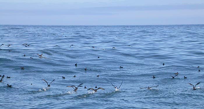 Sooty Shearwater (Puffinis griseus) Westport, WA 7 Aug 2004 Many had to scoot out of the way of the boat. |
