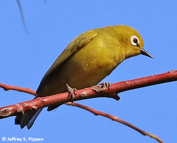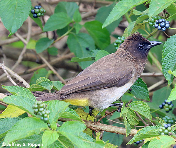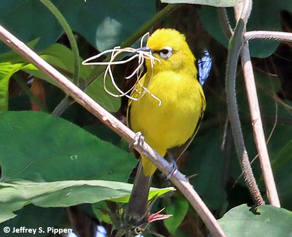 Vieillot's Weaver (Ploceus nigerrimus) Kisoro, Uganda 11 June 2021 Female. ID uncertain, but my best guess based on combination of white eye, large bill, pale lower mandible, overall color pattern, habitat (trees/scrub edge of town). Also known as Viellot's Black Weaver. |