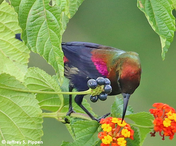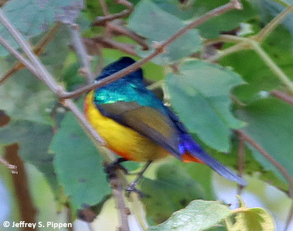 Regal Sunbird (Cinnyris regius) Bwindi Impenetrable N.P., Uganda 11 June 2021 Unfortunately, I only got a couple blurry pics of this colorful species. |