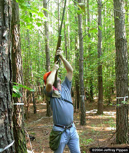 Sarah measures the diameter (DBH) of a tree. |